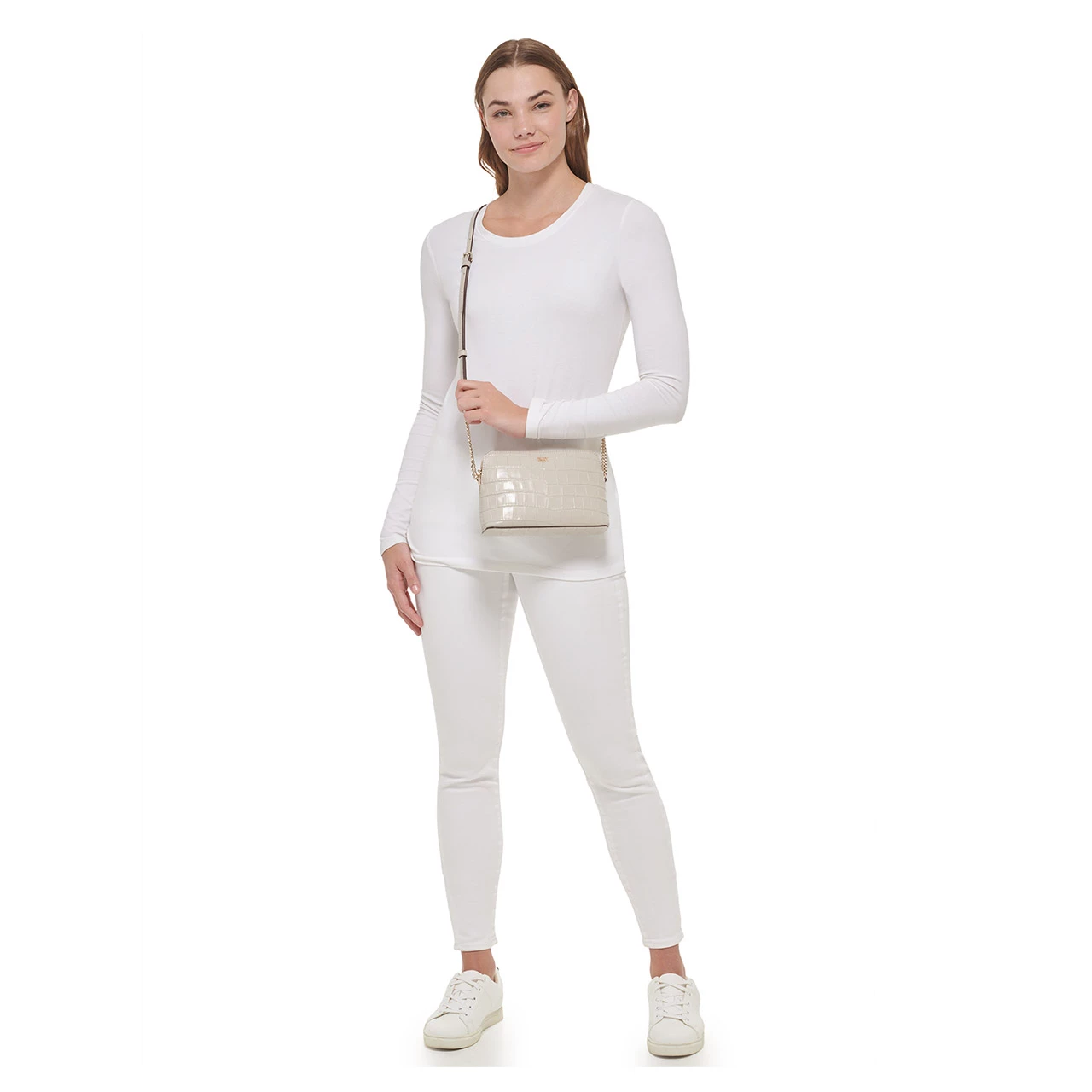 Aktion 💯 DKNY Umhängetasche Dome Croco Prägung Gold/stein 👏