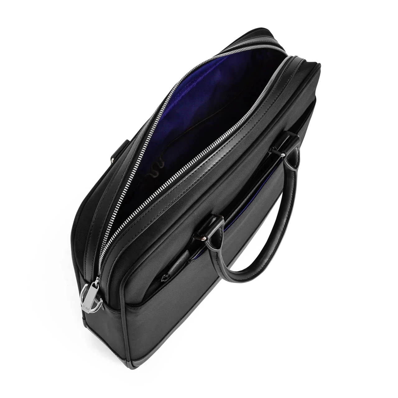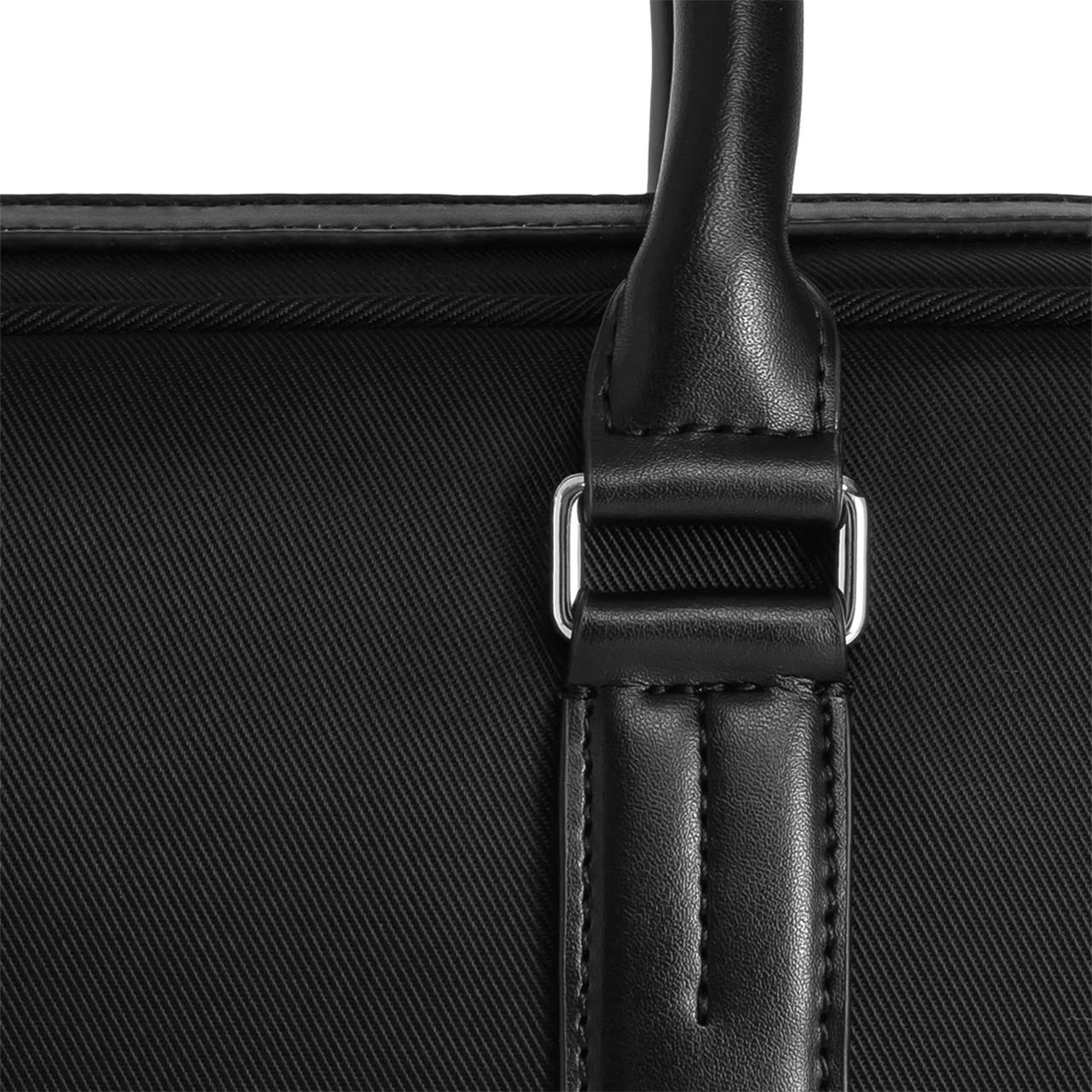Die schwarze Aktentasche aus Canvas des Hauses Le Tanneur überzeugt mit elegantem Design und praktischer Handhabe. Um verschleißanfällige Stellen besser zu schützen, wurden sie mit Spaltleder verstärkt, die im Innenleben verarbeiteten Polsterungen lassen den Laptop gut einbetten. Die Aktentasche, die auch in grau meliert erhältlich ist, besteht aus einem Faltfach, einer Trolleyschlaufe sowie abnehm- und verstellbaren Riemen, damit die Tasche in der Hand, über der Schulter oder umgehängt getragen werden kann. Das Branding “Le Tanneur” auf Silberfolie sowie silberfarbene Metallteile sind stilvolle Designelemente, die die Aktentasche zum unauffälligen Hingucker machen.