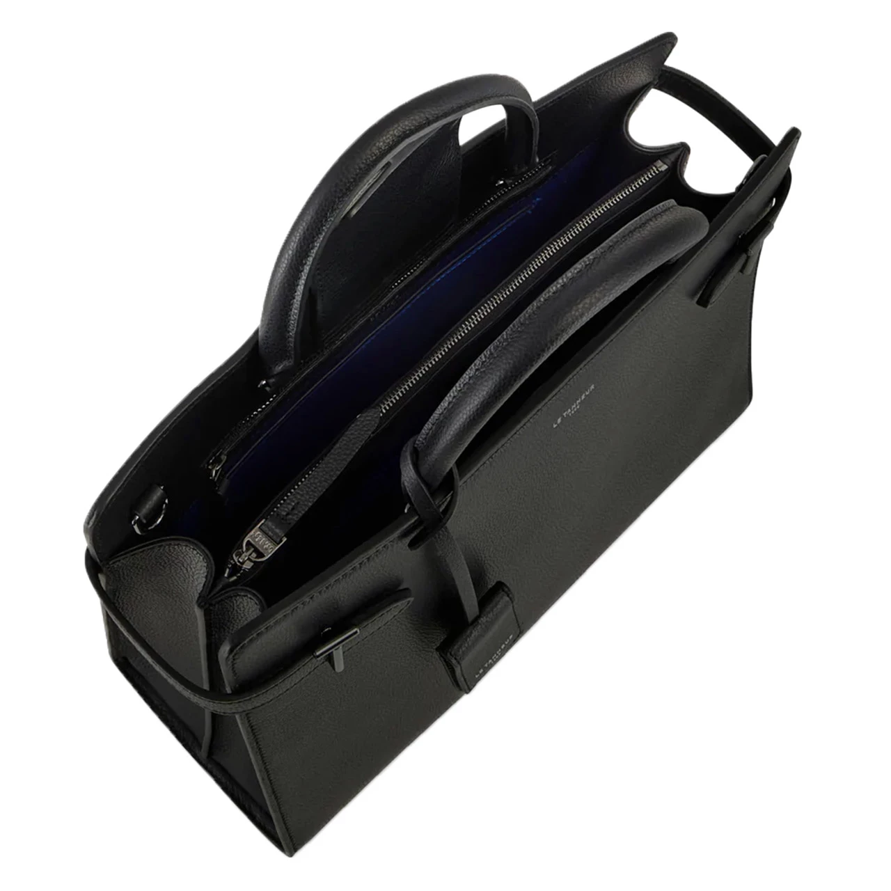 Die schwarze, große Handtasche aus hochwertigem Leder des Hauses Le Tanneur aus der Kollektion Emilie überzeugt mit elegantem Design und exklusiven Materialien. Im Innern finden sich zwei flache Fächer, zwei Reißverschlussfächer sowie ein Fach hinten in blauem Textilfutter. Neben den Litzengriffen kann die Tasche, dank der abnehm- und verstellbaren Riemen, nicht nur in der Hand, sondern auch über Schulter oder umgehängt getragen werden. Das Branding “Le Tanneur” zeigt sich in silber-anthrazitfarbenen Details auf dem abnehmbaren Anhänger sowie auf der Tasche und in Form von T-förmigen Metallteilen. Die Tasche ist in unterschiedlichen Größen und Farben erhältlich und ein stilvoller Hingucker.