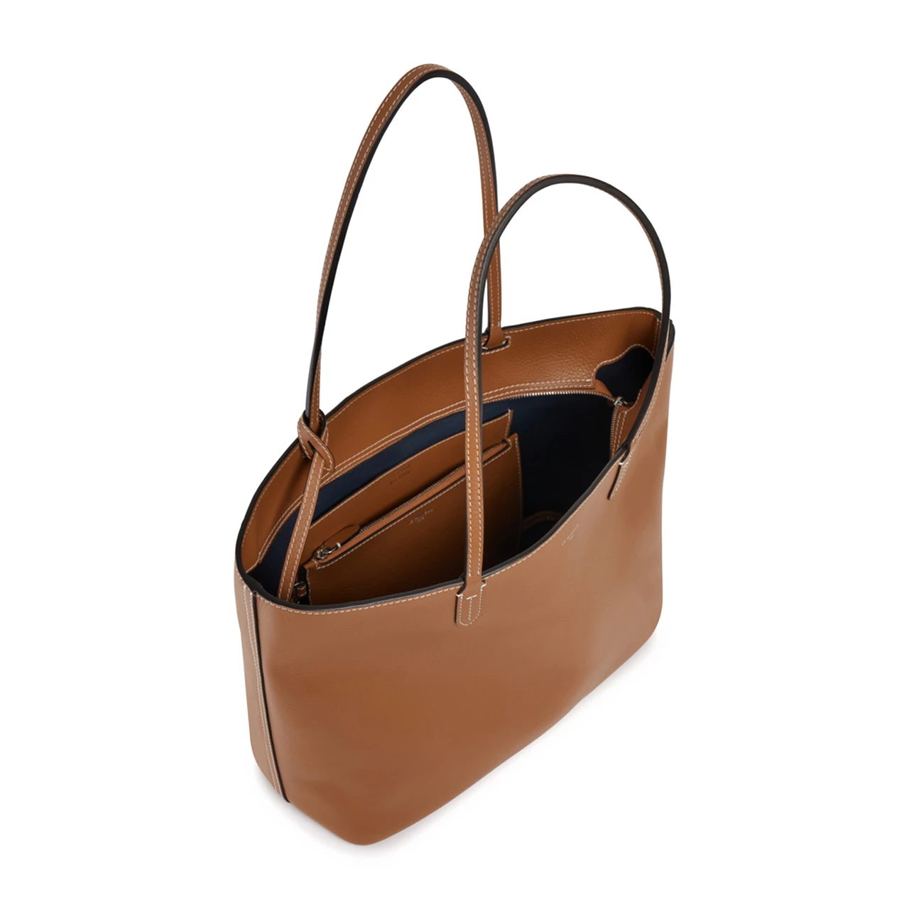 Die große, braune Tragetasche des Hauses Le Tanneur aus der Kollektion Louise überzeugt mit elegantem Design und exklusiven Materialien. Gefertigt aus geschmeidig weichem, italienischem Narbenleder verspricht der Shopper, der auch in weiteren Farben und Größen erhältlich ist, nicht nur Stil, sondern auch Praktikabilität auf hohem Niveau. Denn die Innenseite ist aus robustem, geharztem Leder gefertigt, die langen Henkel bieten Tragekomfort in der Hand sowie über der Schulter. Für kleine, wichtige Dinge bietet die Tasche eine weitere, herausnehmbare Innentasche mit Reißverschluss.