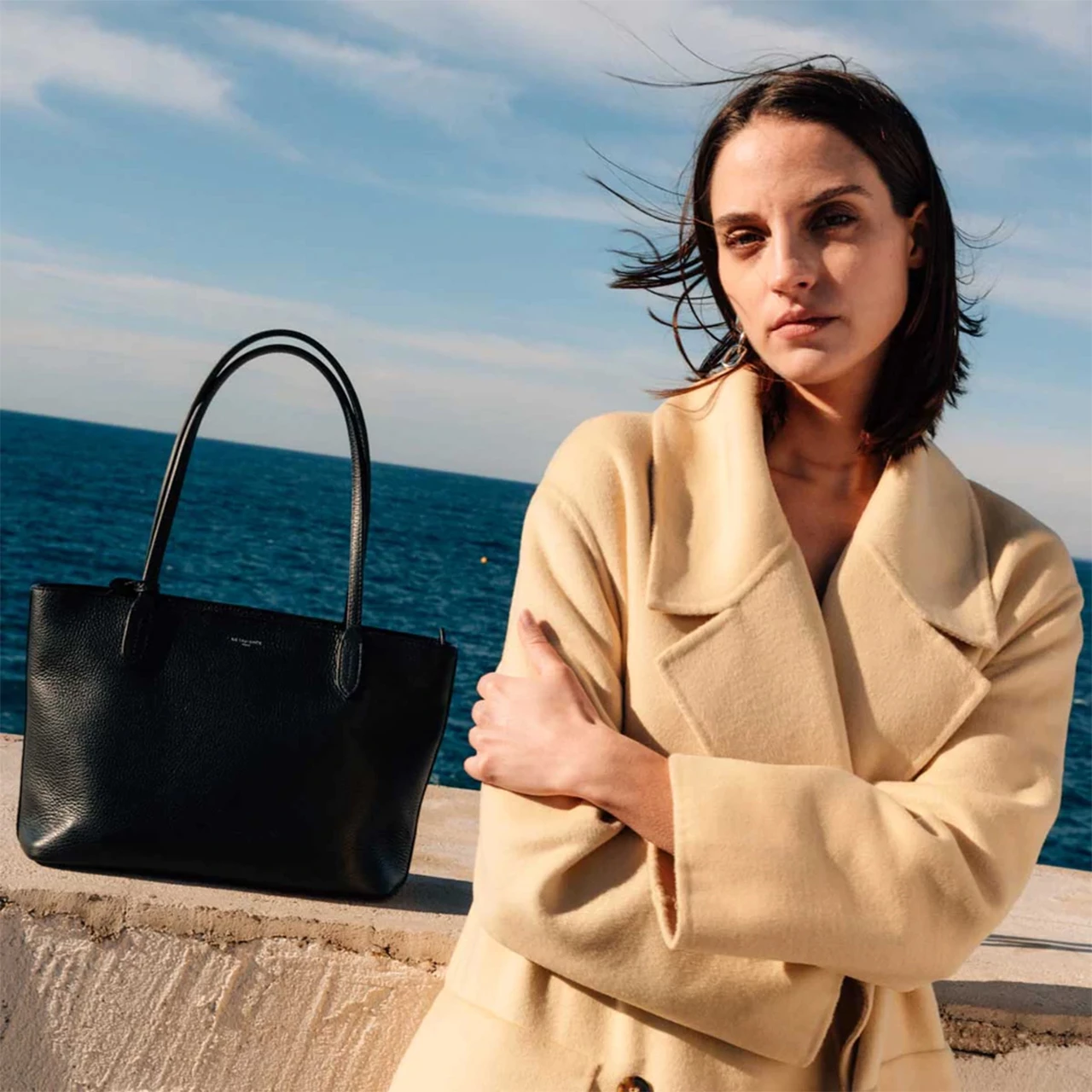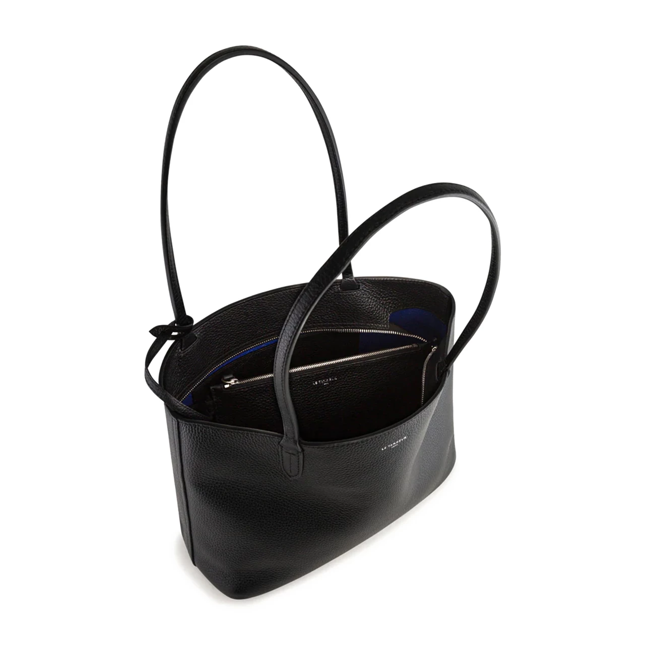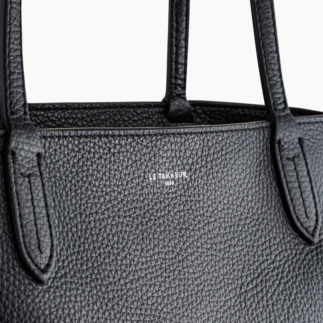 Die kleine schwarze Tragetasche des Hauses Le Tanneur aus der Kollektion Louise überzeugt mit elegantem Design und exklusiven Materialien. Gefertigt aus geschmeidig weichem, italienischem Narbenleder verspricht der Shopper, der auch in weiteren Farben und Größen erhältlich ist, nicht nur Stil, sondern auch Praktikabilität auf hohem Niveau. Denn die Innenseite ist aus robustem, geharztem Leder gefertigt, die langen Henkel bieten Tragekomfort in der Hand sowie über der Schulter. Für kleine, wichtige Dinge bietet die Tasche eine weitere, herausnehmbare Innentasche mit Reißverschluss.