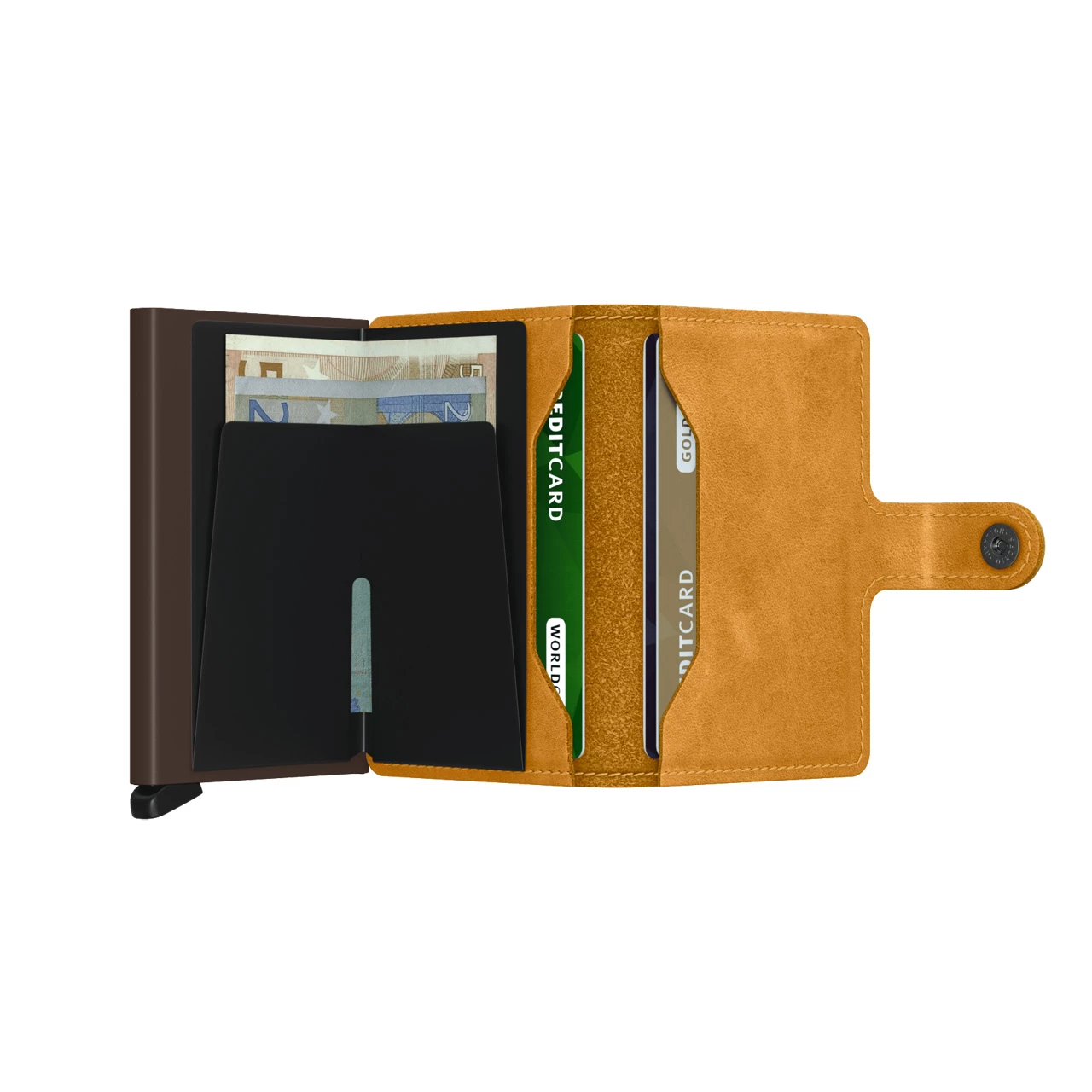 Bietet Platz für: Cardprotector (4-6 Karten), 4 extra Karten, Banknoten, Visitenkarten, Belege.