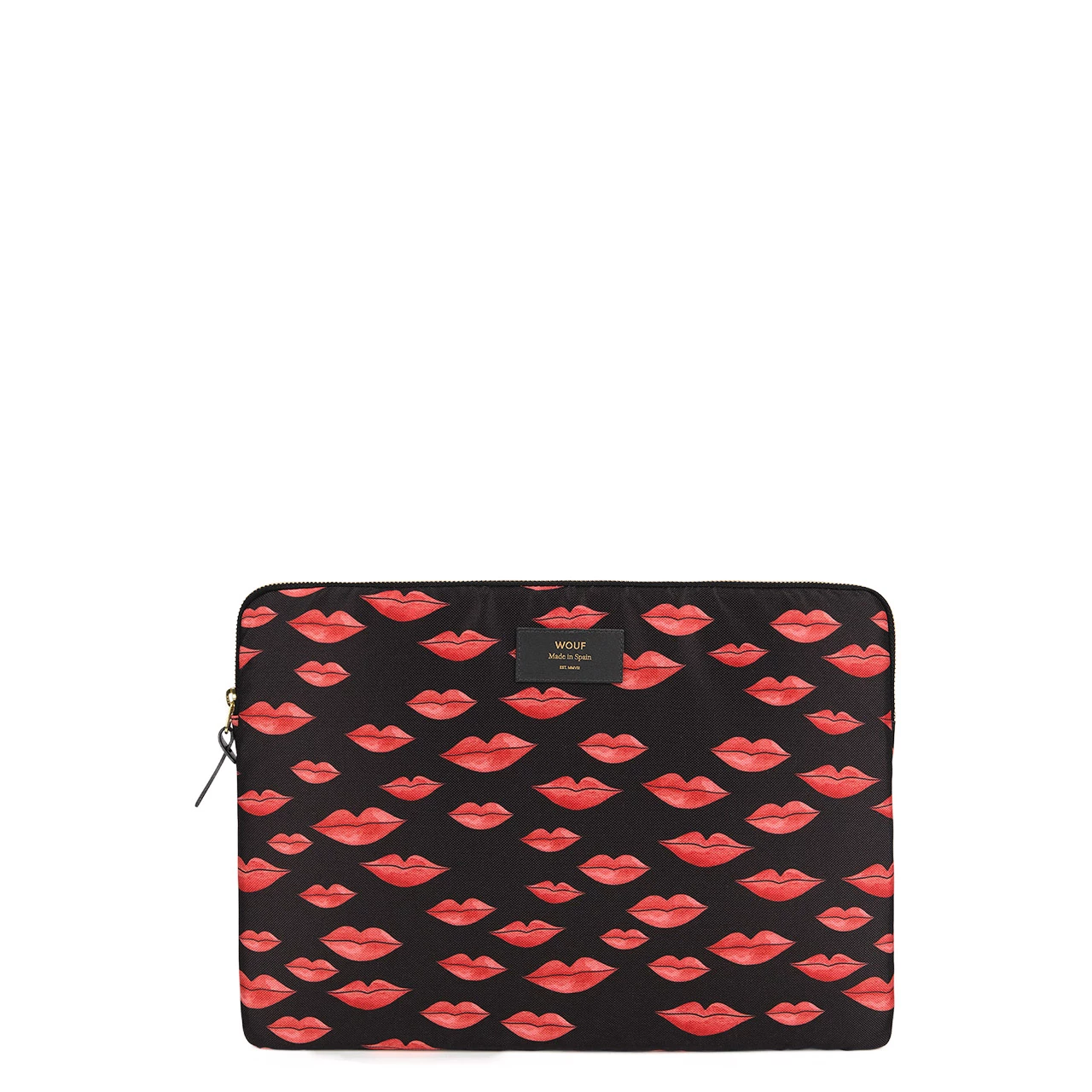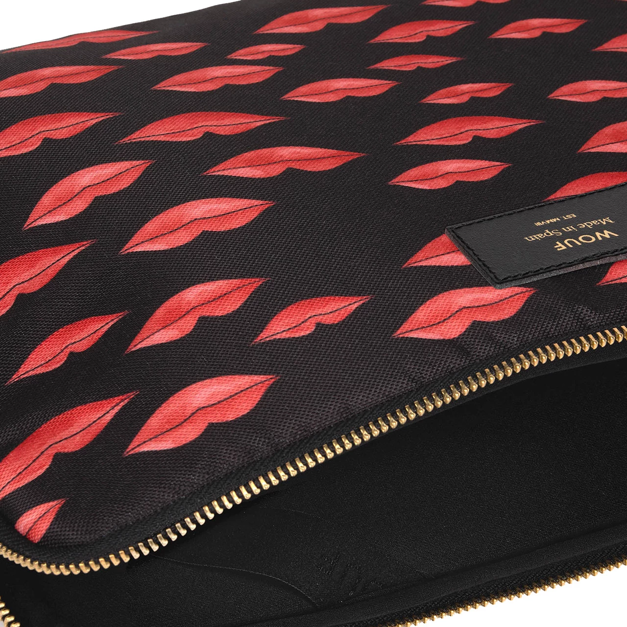 “Beso” bedeutet auf Spanisch “Kuss” und genauso zeigt sich die wasserabweisende Laptophülle des spanischen Unternehmens Wouf. Der Print roter Kussmünder zaubert einem genauso ein Lächeln auf das Gesicht, wie die Materialien, aus denen die Hülle gefertigt ist. Recycelter Stoff aus PET und umweltfreundliche, auf Wasser basierende Tinte treffen auf recycelte Reißverschlüsse und Lederelemente. Im Innern wird der Laptop dank 0,05 cm Schutzschaumstoff auf jeder Seite und zwei elastischen Sicherheitsgurten hervorragend geschützt. Die Hülle ist auch in anderen Designs, Größen sowie für Handys oder Tablets erhältlich.